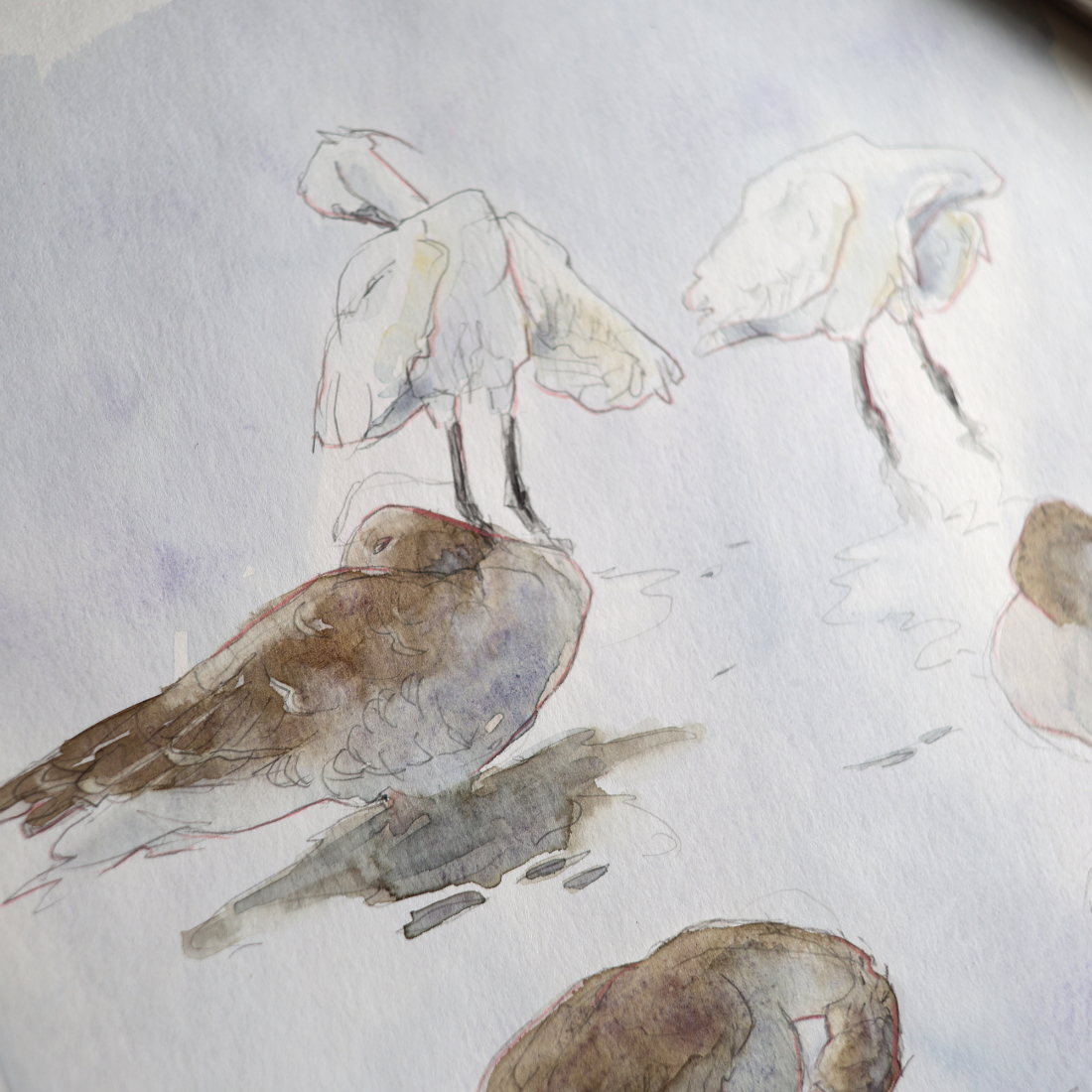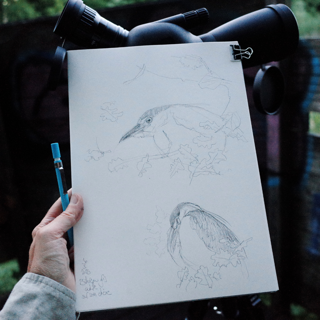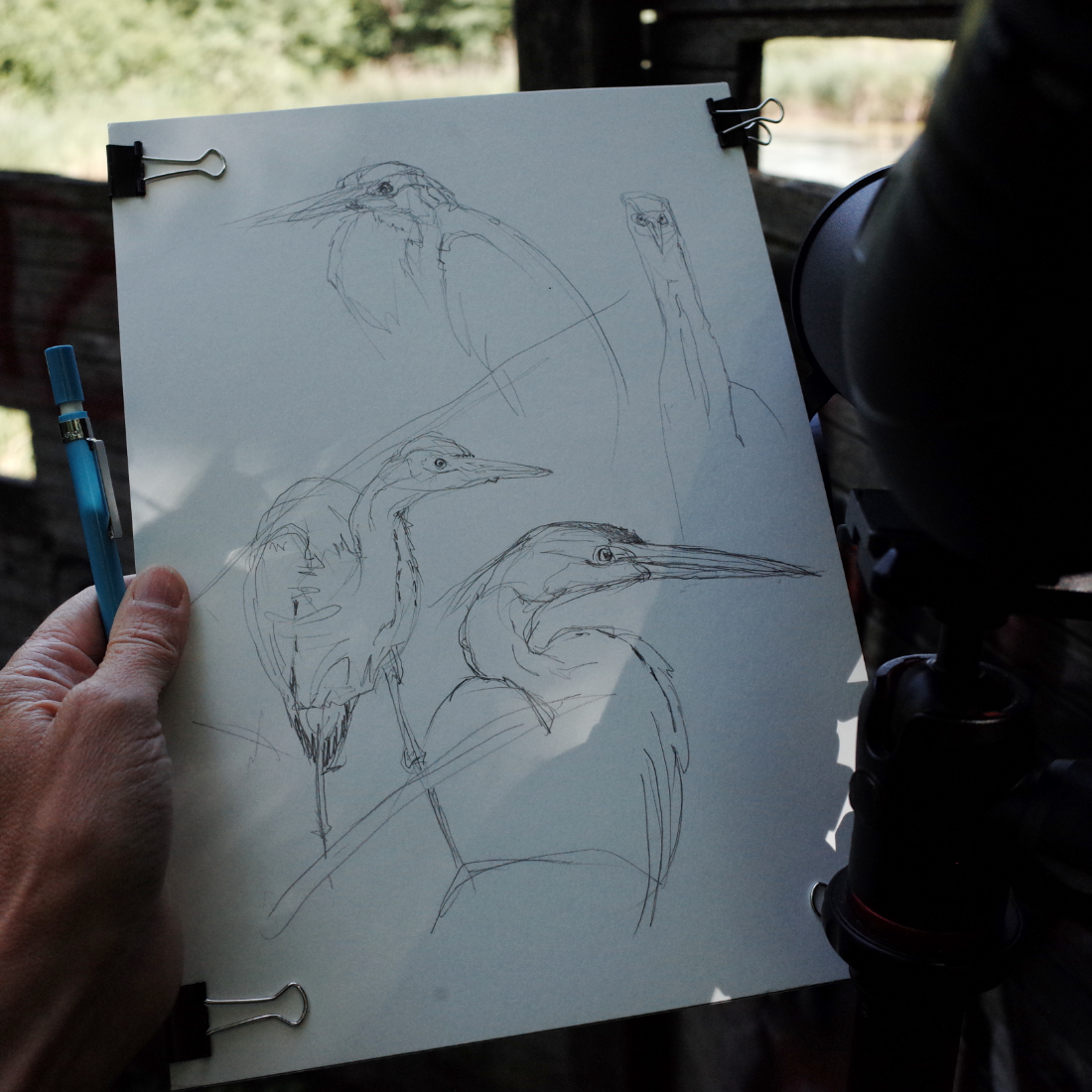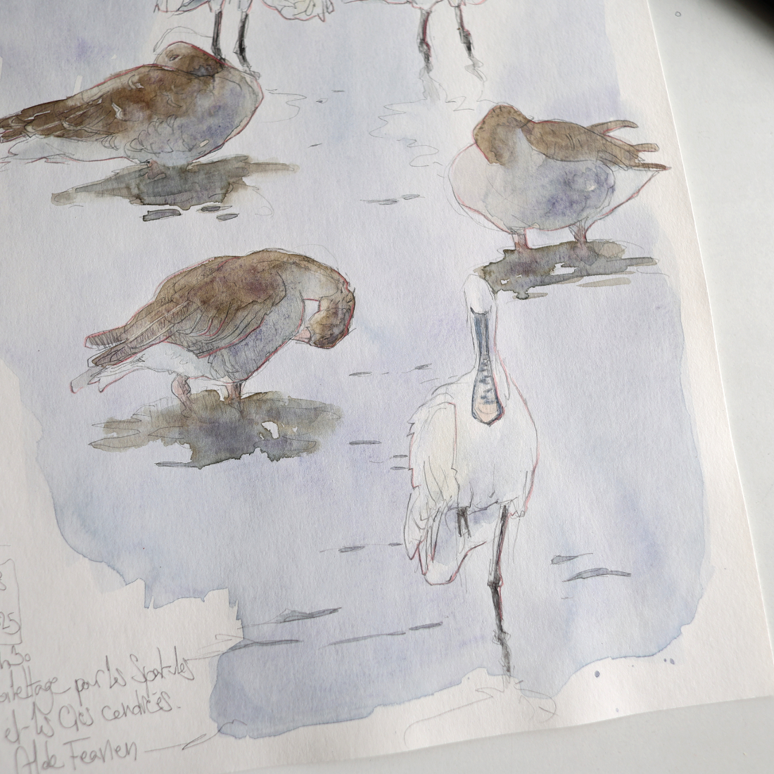 Oiseaux sauvages, observés en nature. Ci-dessous une série dessinés au crayon de couleur, d’après mes photos faites sur place.