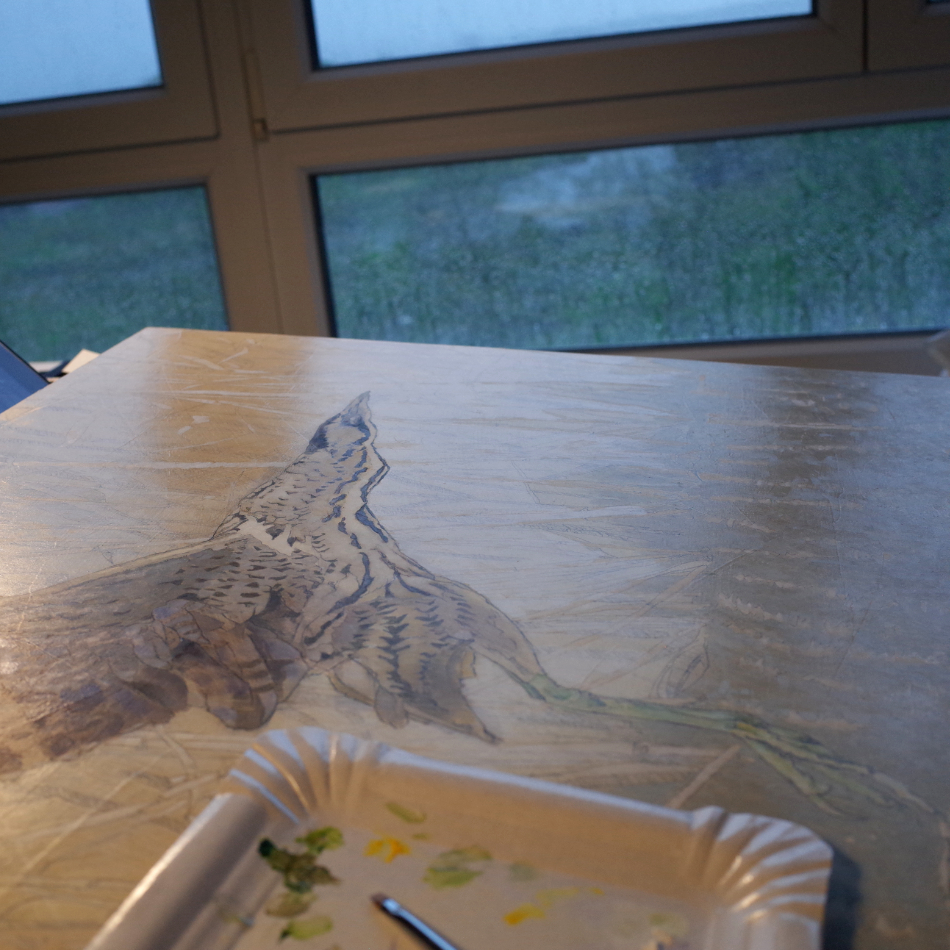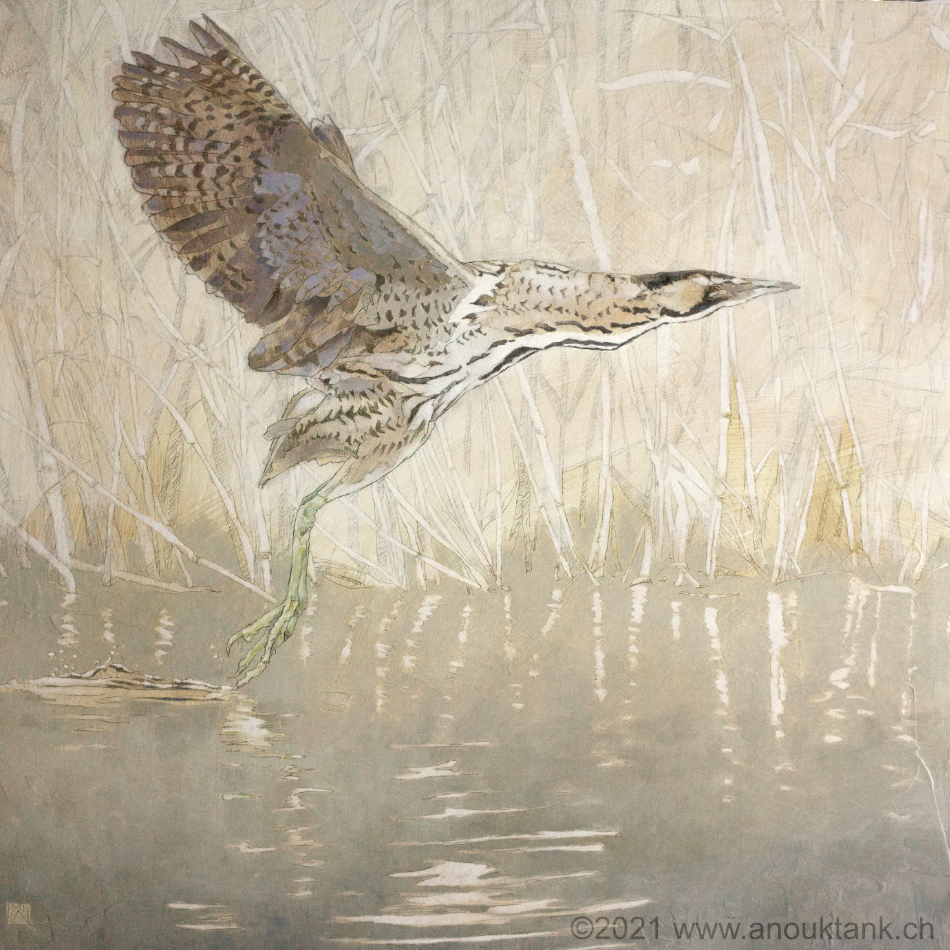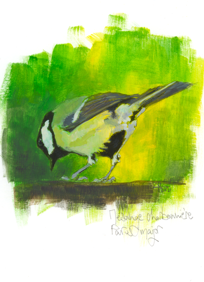 Du petit format (15x18cm) à la tempera ou à la gouache sur papier (encadrés), au plus grand en technique mixte (40x40cm, 30x60, 50x50 cm) sur toile ou bois. Toujours d'après mes observations et photos d'oiseaux sauvages.