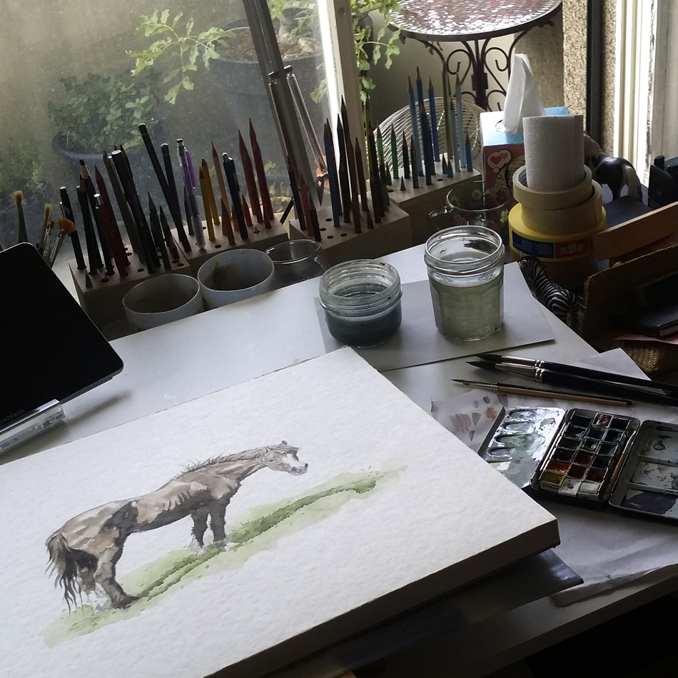 L'animal seul, ou un portrait groupé. La taille est à définir, le support également (papier, toile,.. ..). Sans encadrement.