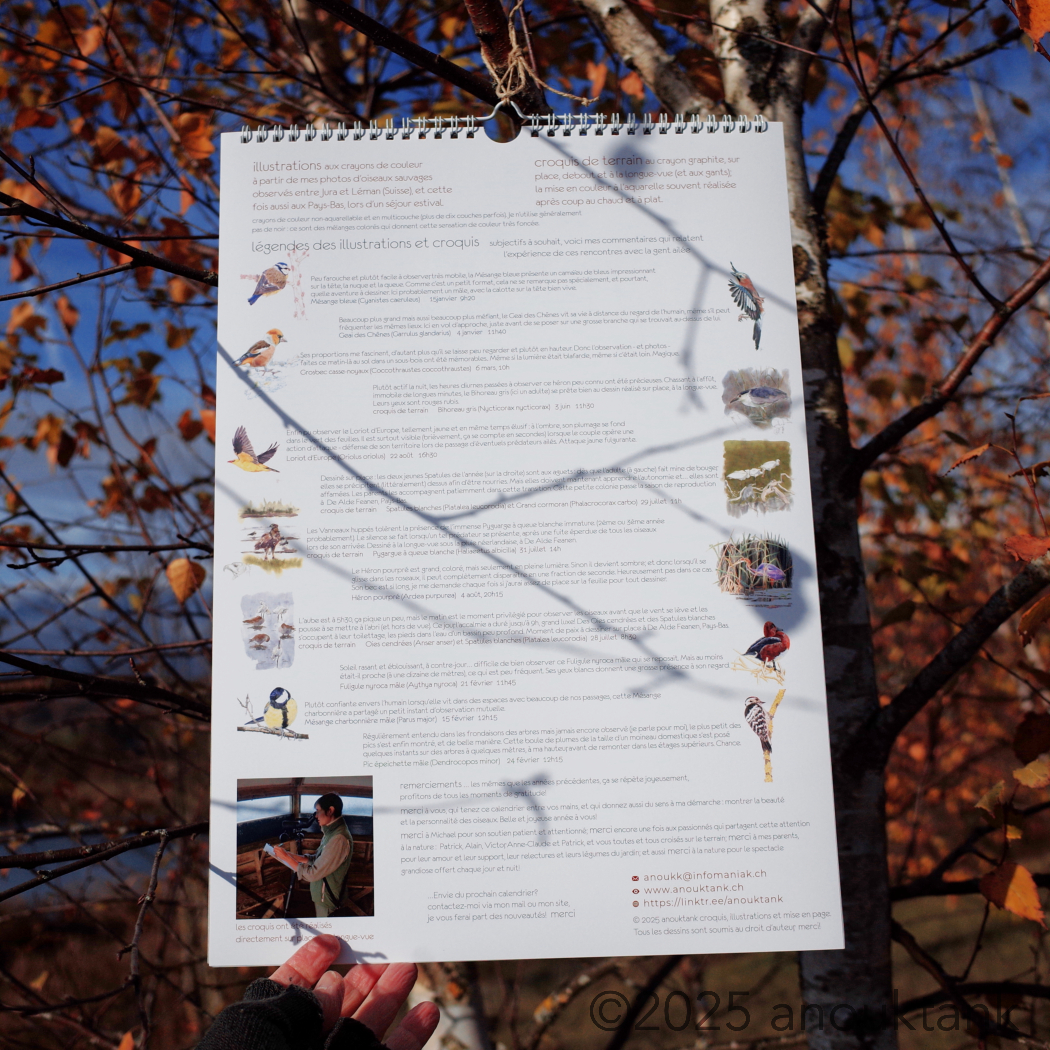 Depuis 2021 le sujet de mon calendrier annuel porte sur les oiseaux de ma région, entre Jura et Léman (Suisse). Cette fois-ci, il y a quelques invités des Pays-Bas, suite à un séjour estival sur place, à De Alde Feanen.