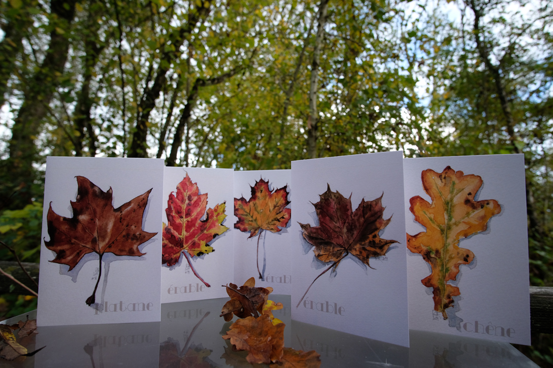 D'après mes aquarelles originales, je propose 4 jeux différents de cinq cartes avec enveloppes.