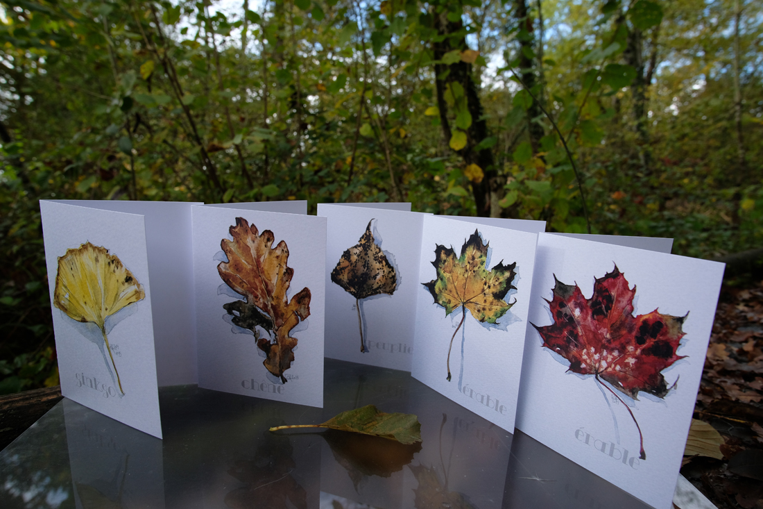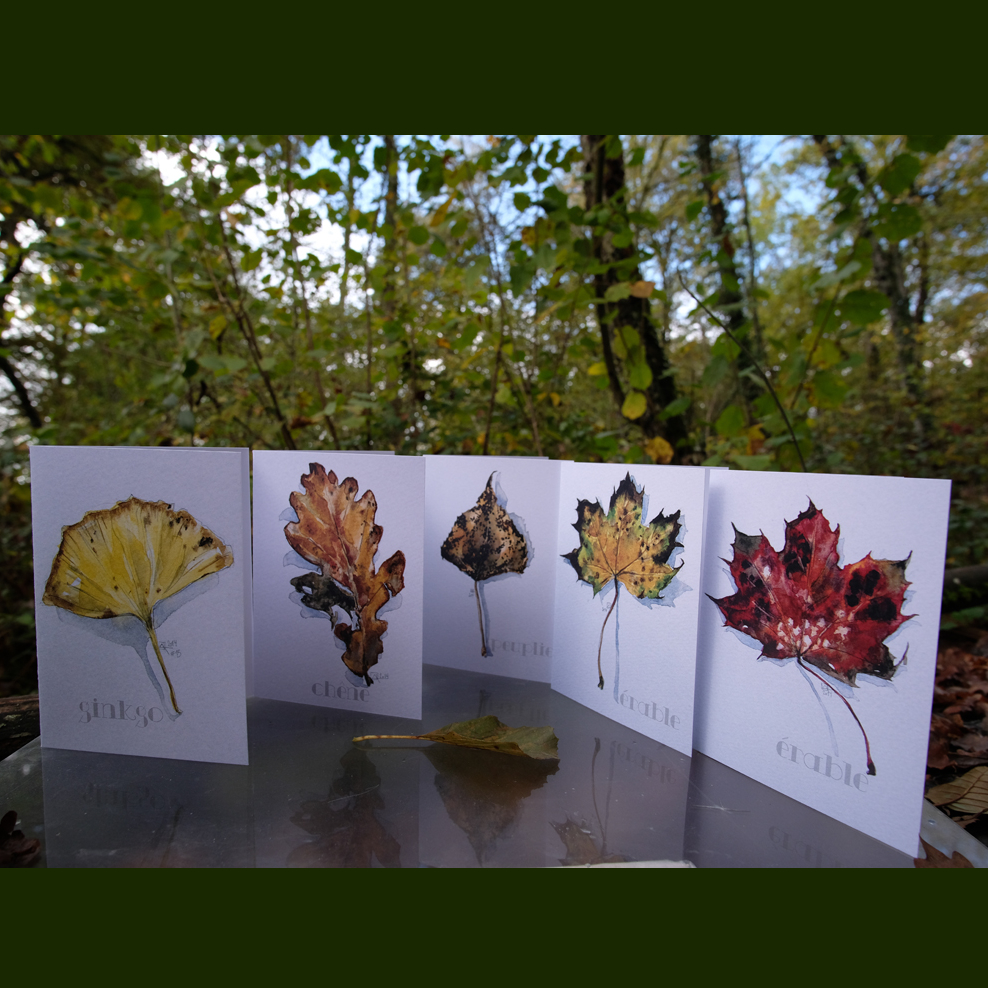 D'après mes aquarelles originales, je propose 4 jeux différents de cinq cartes avec enveloppes.
