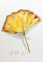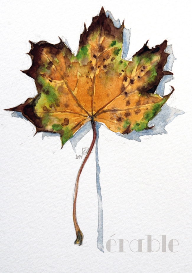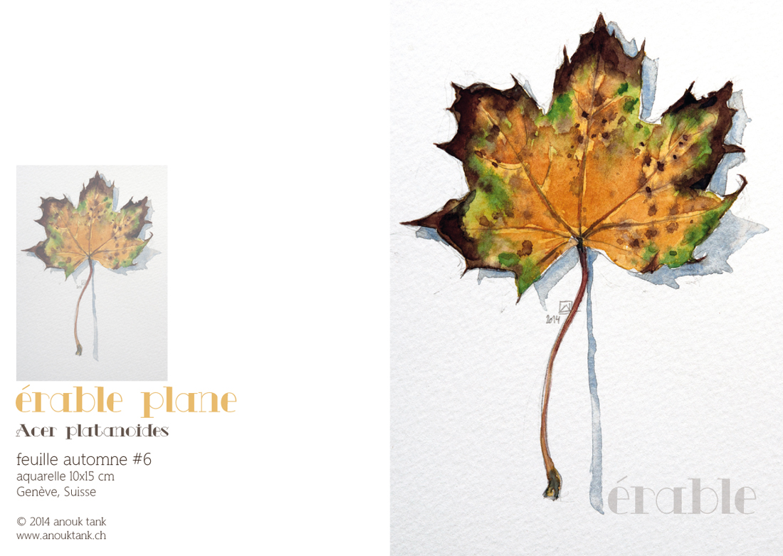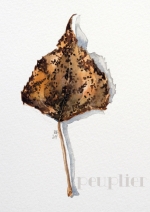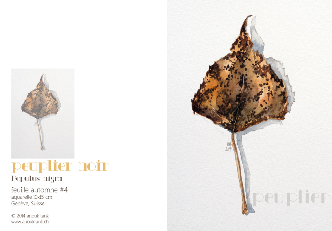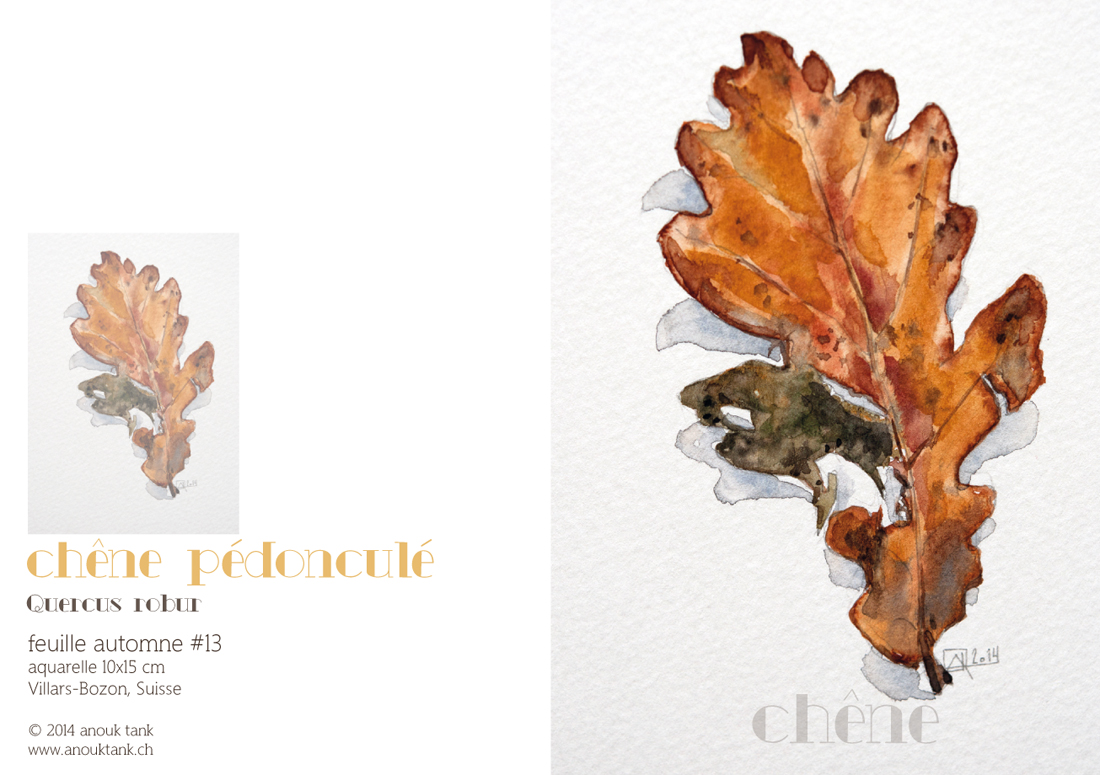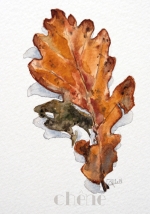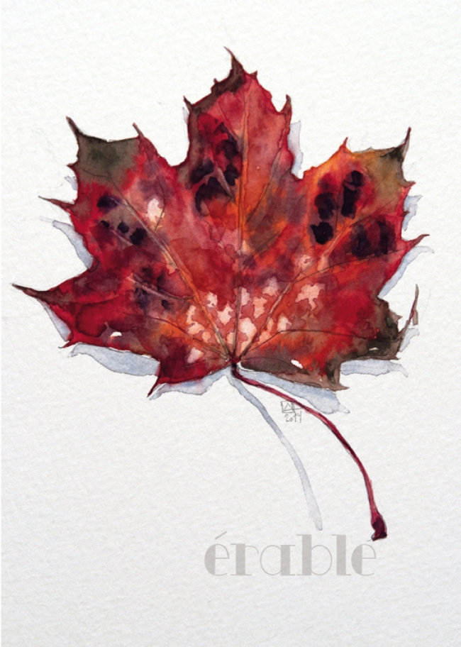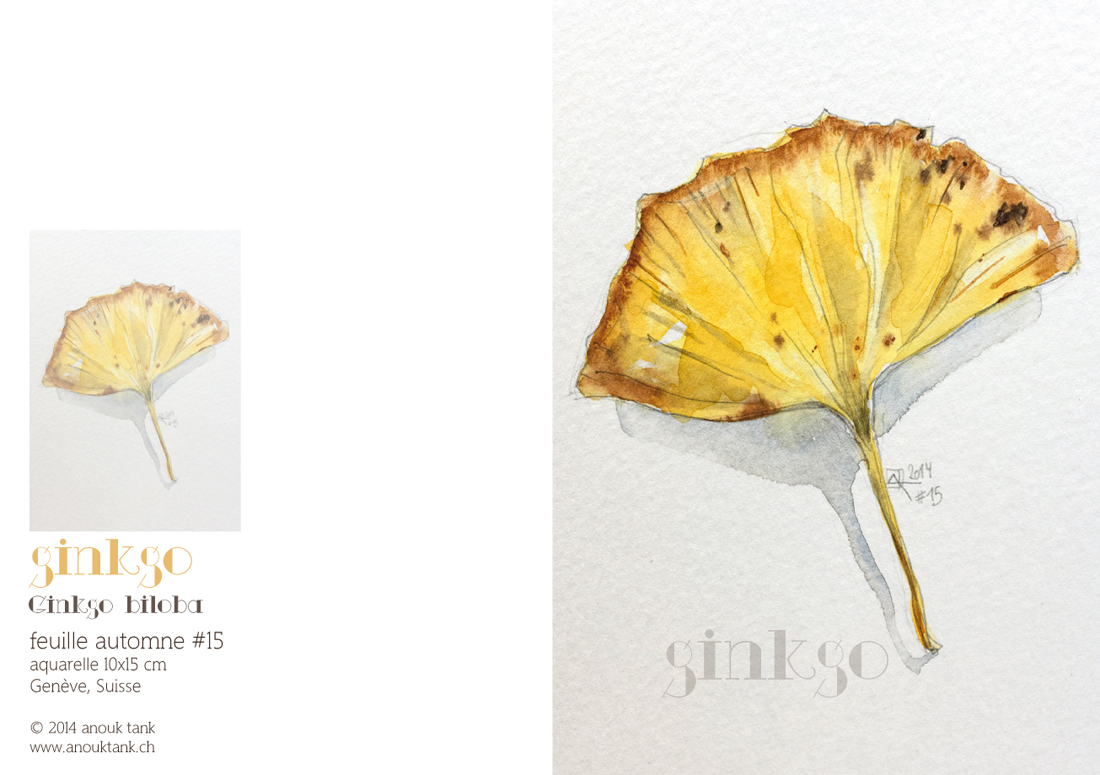 Je les ai donc conservées dans le sac sur le balcon, au frais et dans l'humidité, afin que le processus de coloration continue. J'en sortais une, et le jeu était que je réalisais une aquarelle de ma feuille avant qu'elle ne sèche complètement, devienne mat et terne, et se déforme. Petit à petit les aquarelles se sont multipliées... et c'est ainsi que j'ai eu l'idée d'en faire des cartes de voeux. Ma première série.