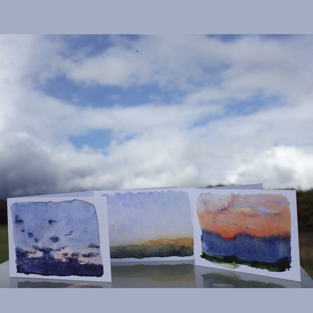 D’après mes aquarelles originales, je propose 4 jeux différents de trois cartes avec enveloppes.