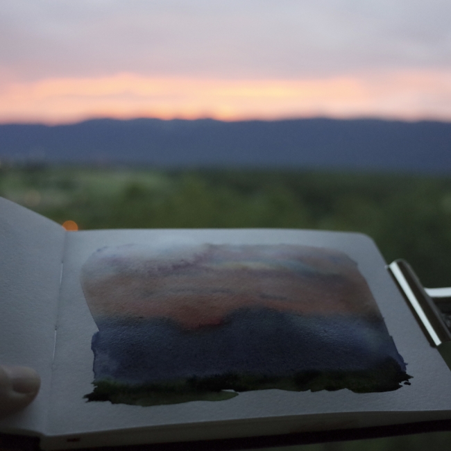 Je désirais partager la vision somptueuse qui s'offre à mon regard, dans des aquarelles rapides, un peu comme des instantanés, où je me concentrais davantage sur l'ambiance colorée que les détails.