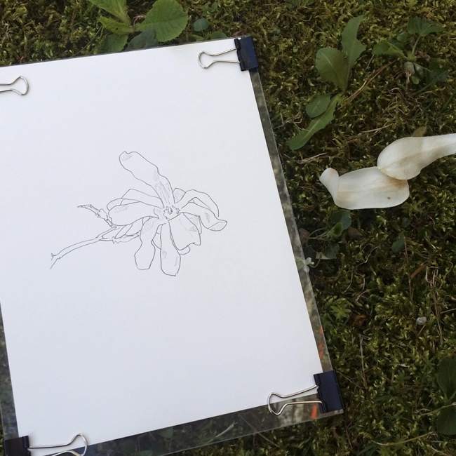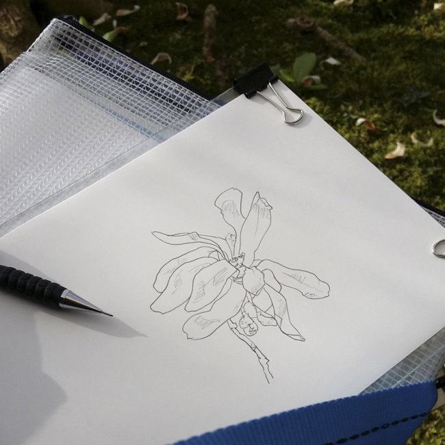 Les dessins ont été faits sur place le 14 avril 2018 à Geneve (Suisse), au pied des magnolias dont je guettais la floraison chaque année.