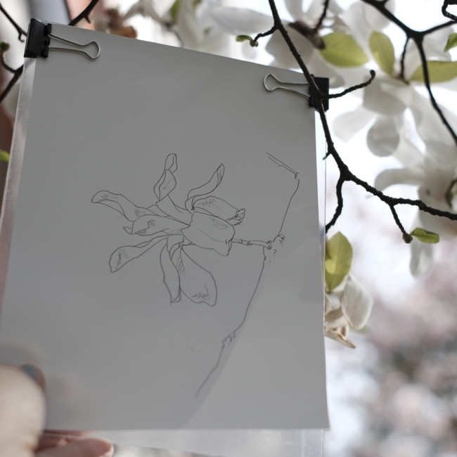 Les dessins ont été faits sur place le 14 avril 2018 à Geneve (Suisse), au pied des magnolias dont je guettais la floraison chaque année.