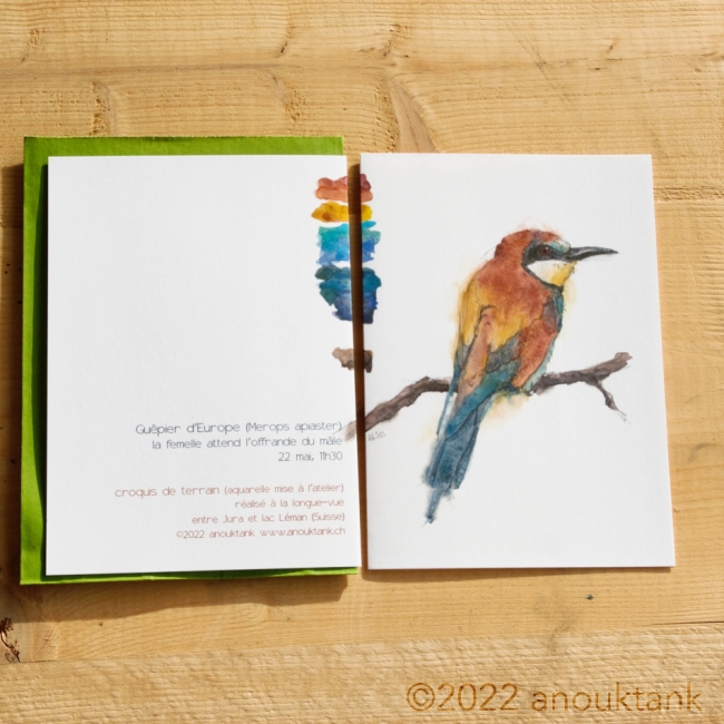 J'observe les oiseaux sauvages et les dessine sur place, à la longue-vue, ou je les prends en photo et les dessine après-coup, à l'atelier. Dans tous les cas, ce sont des rencontres et des aventures.