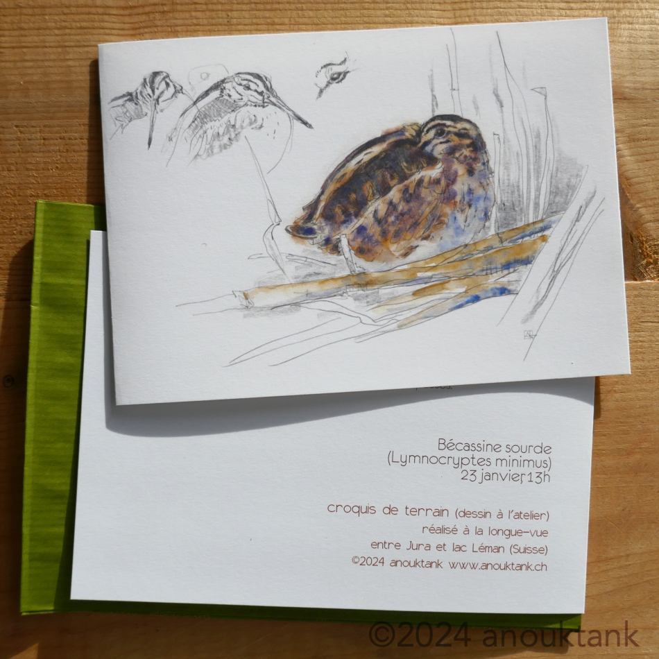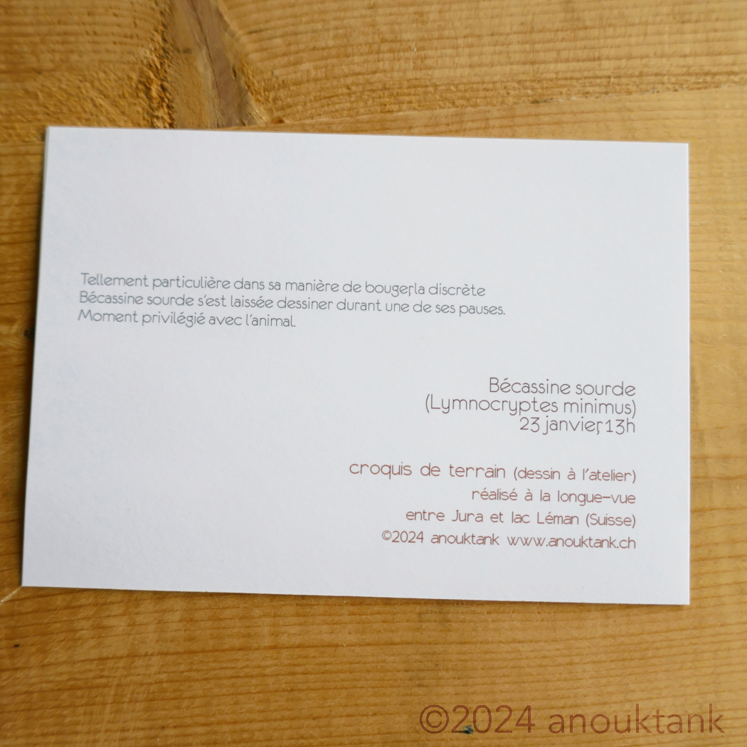 Tellement particulière dans sa manière de bouger, la discrète Bécassine sourde s’est laissée dessiner durant une de ses pauses. Moment privilégié avec l’animal.
