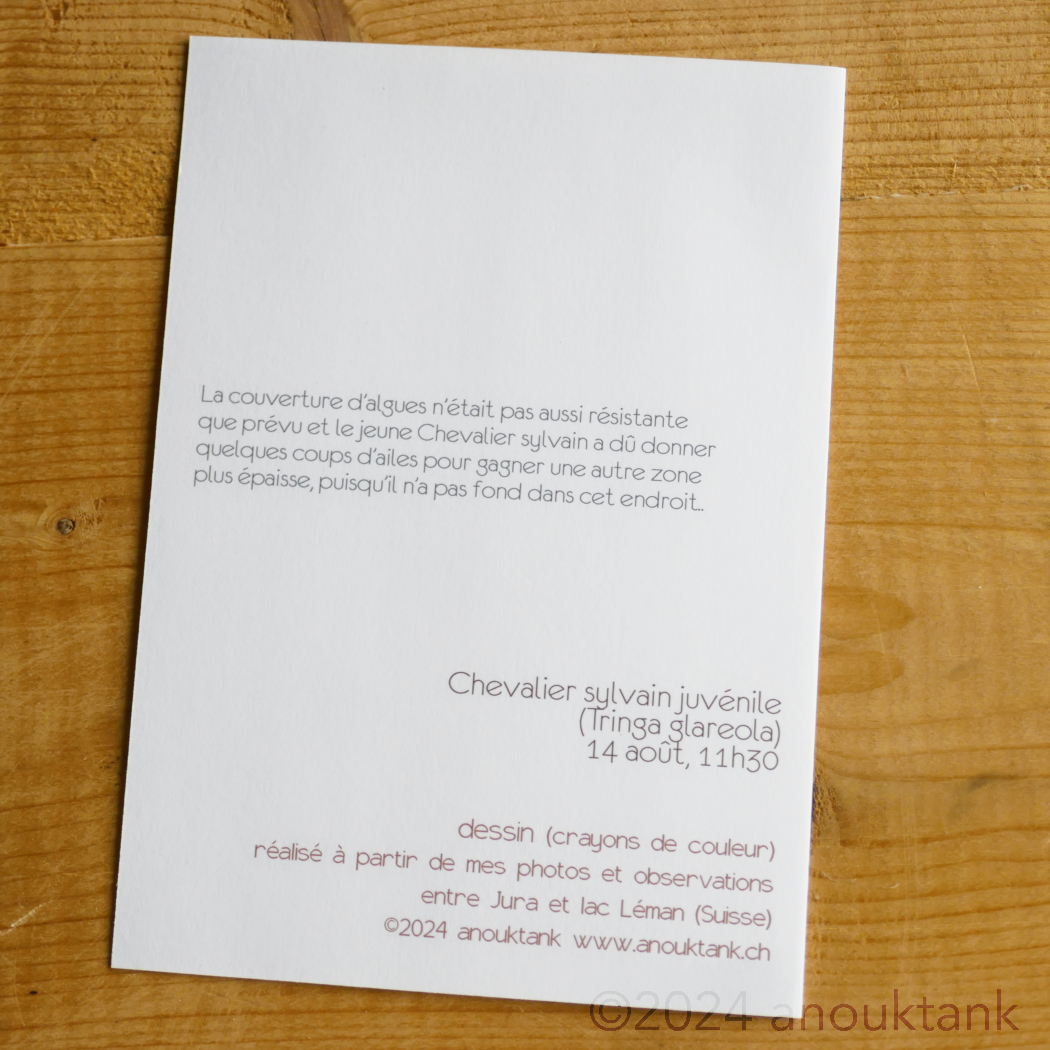 La couverture d’algues n’était pas aussi résistante que prévu et le jeune Chevalier sylvain a dû donner quelques coups d’ailes pour gagner une autre zone plus épaisse, puisqu’il n’a pas fond dans cet endroit..