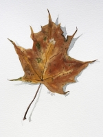 Je les ai donc conservées dans le sac sur le balcon, au frais et dans l'humidité, afin que le processus de coloration continue. J'en sortais une, et le jeu était que je réalisais une aquarelle de ma feuille avant qu'elle ne sèche complètement, devienne mat et terne, et se déforme. Petit à petit les aquarelles se sont multipliées... et c'est ainsi que j'ai eu l'idée d'en faire des cartes de voeux. Ma première série.